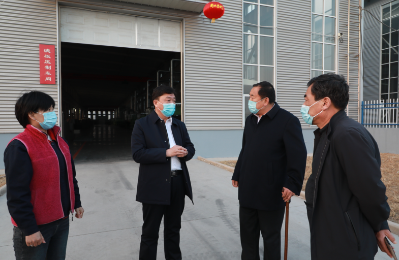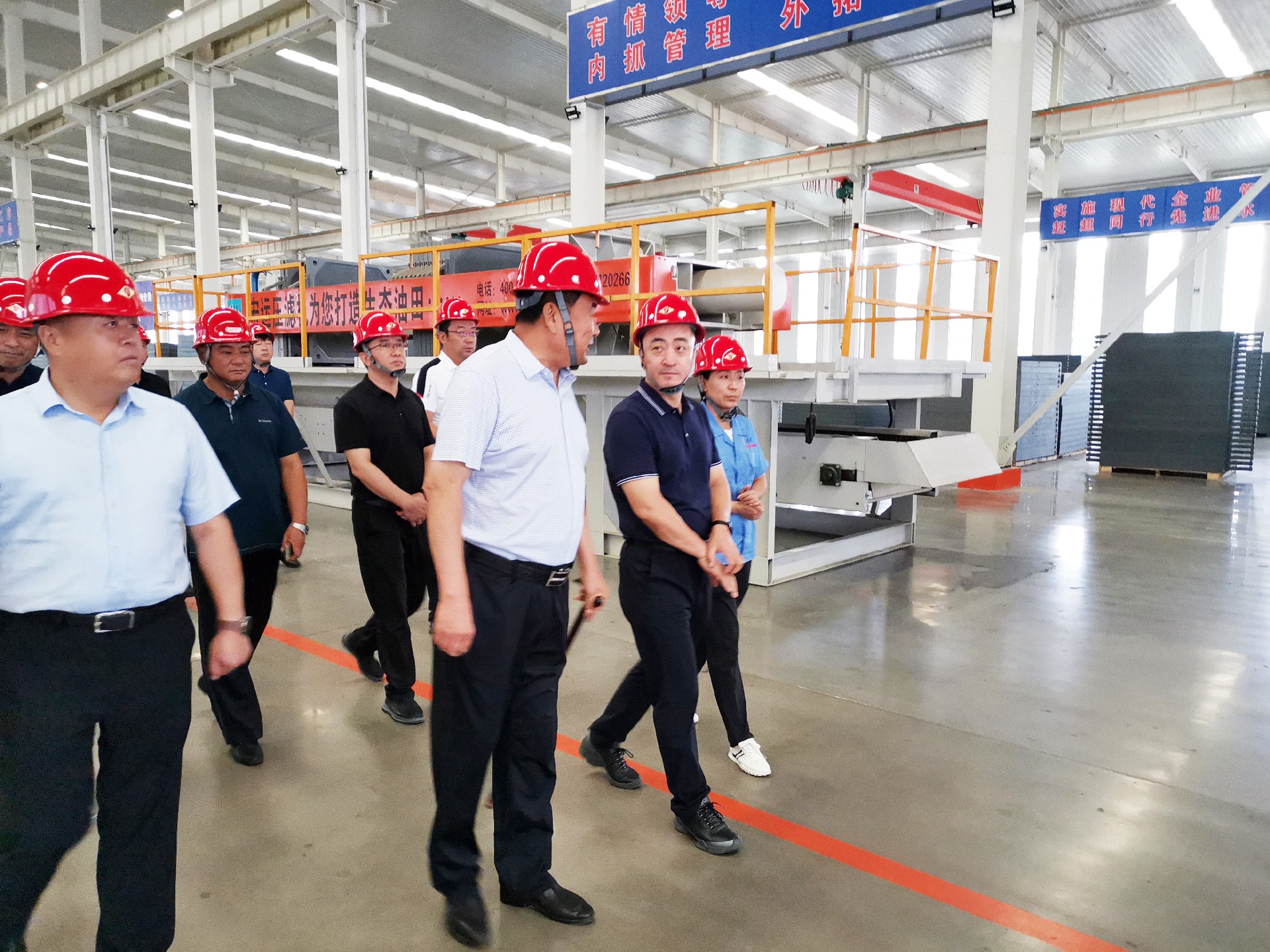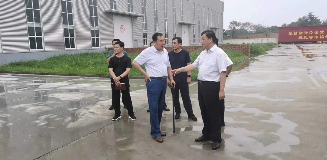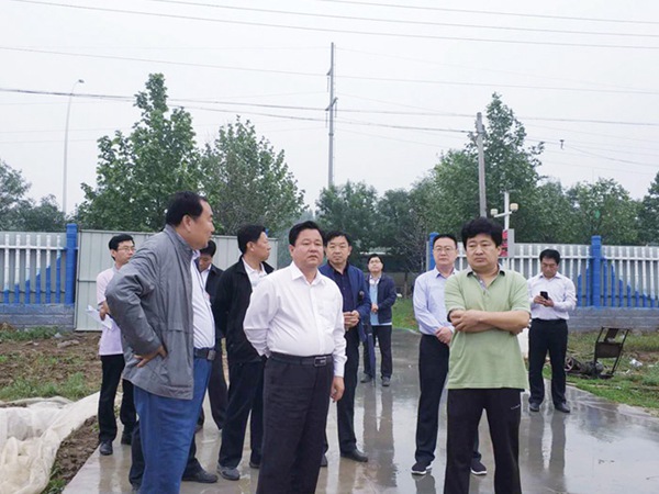 2018年7月19日,縣長(zhǎng)王成宗(中)、開發(fā)區(qū)主任候會(huì)然(右一)在新公司施工現(xiàn)場(chǎng)視察工作
