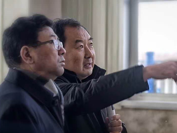 2019年1月8日在新公司,董事長(zhǎng)崔洪亮向市委書記王景武介紹油田泥漿不落地壓濾機(jī)情況